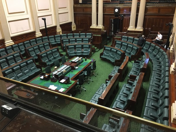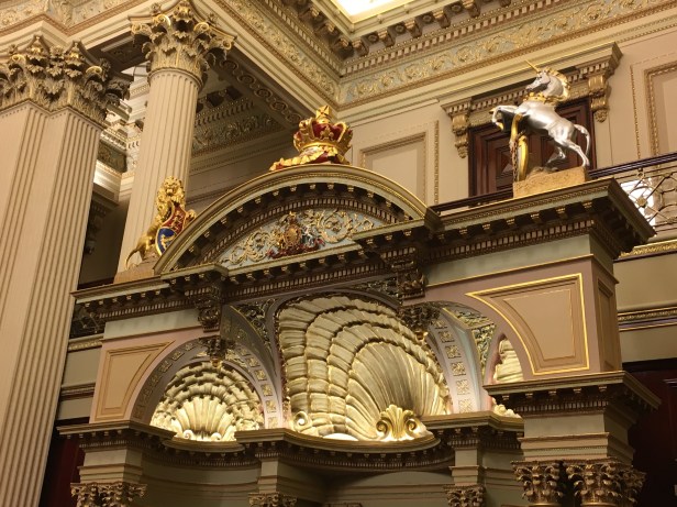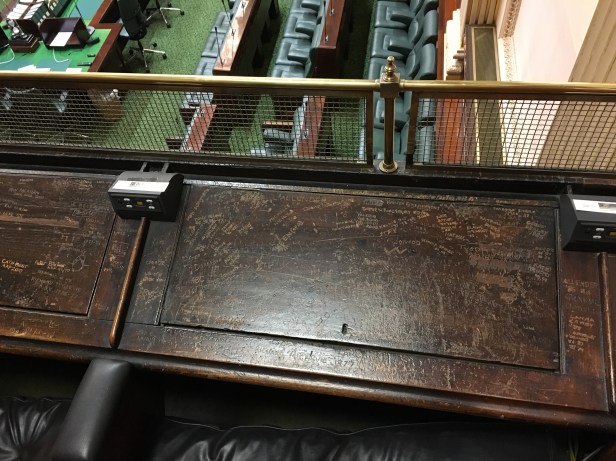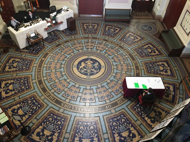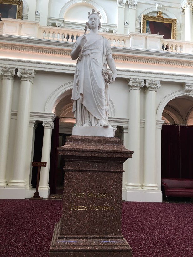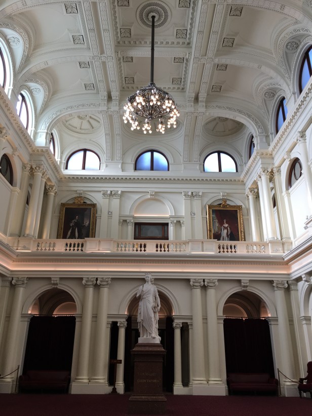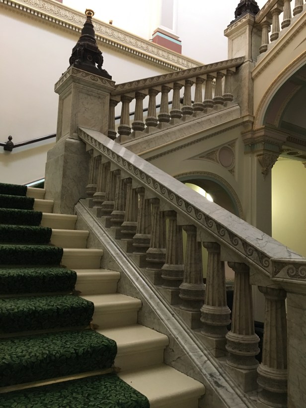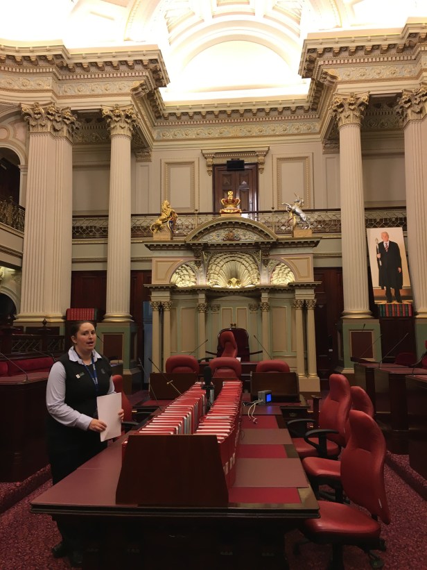 Red is the Upper house. I asked her why the house had two different carpet through out. She said it is so members of each house knows which part they are to go.
