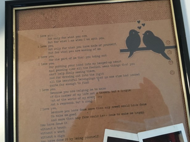 Not a great photo because I didn’t want names published. This is what I found in my daughter’s bedroom. It’s a piece by her boyfriend to her.
