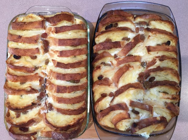 Photos from what we cooked at the community kitchen yesterday . Bread and butter pudding with a fruity sauce and whipped cream.