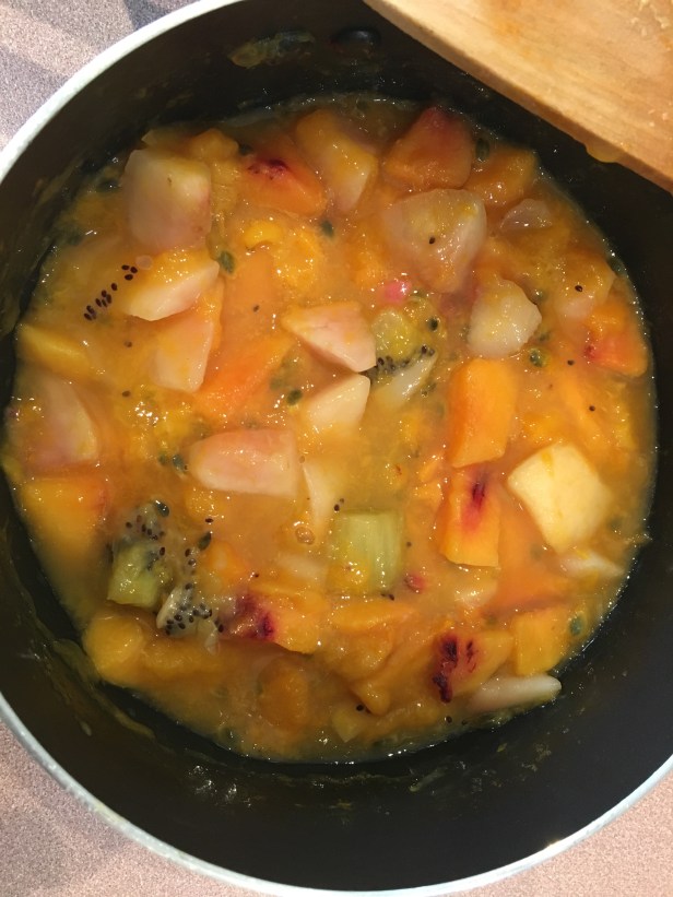 Originally it was going to be a fruit salad to go with the pudding but when I had a look, the fruits didn’t look that nice so we ended up having to spruce it up.