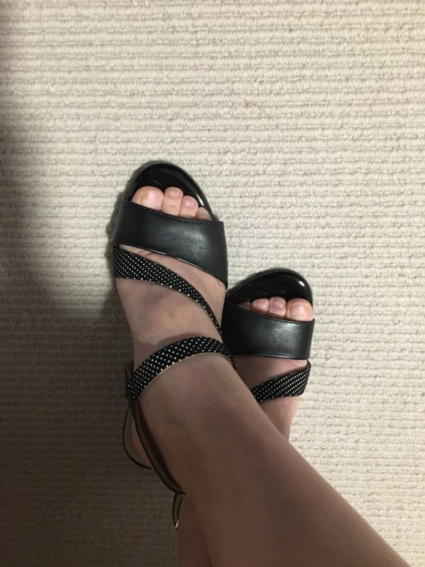 Party shoes on. I’ve decided to drive to the tram stop. Saves me walking in them.