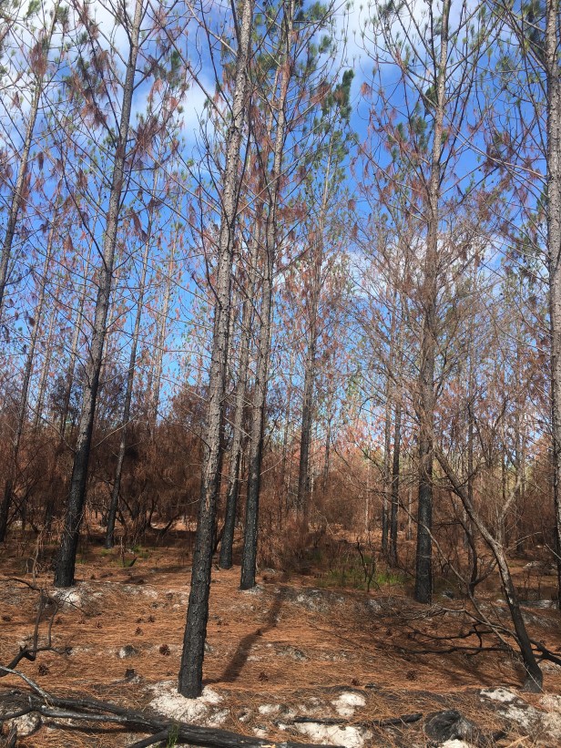 Burnt trees and kangaroos