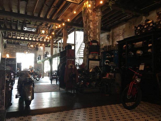 And since we were locked out he took me to go wait at this cafe. It’s a cool place. It’s a motorbike repair shop slashed bar slashed cafe slashed barber.