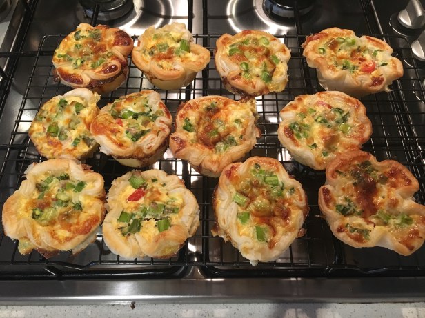 Quiche and salad for lunch. And rum baba for dessert. He had 2 slices.
