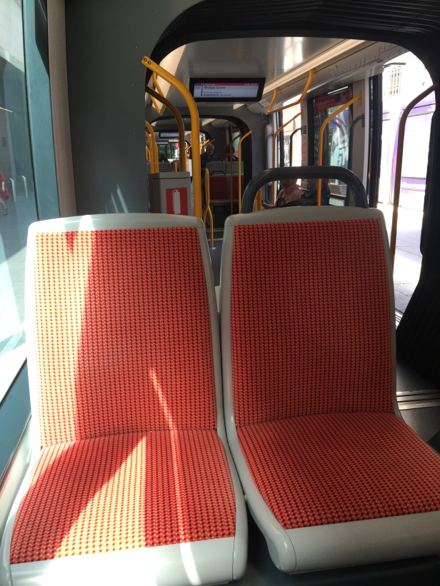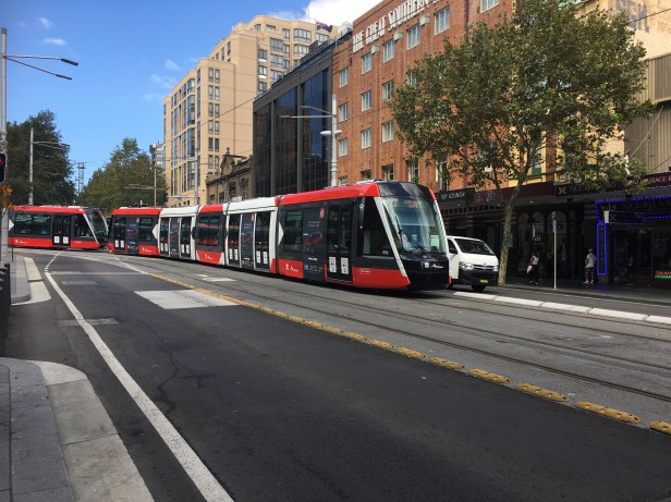 Catching their light rail to Randwick. It’s really cool. They had their own tracks so no sharing with the traffic. Also to touch on and off you do it at the stop so no crowding on trams. I’m impressed.