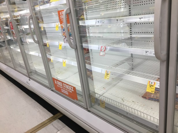 Frozen section gone. I can see some pizzas left. One good thing my area is full of young ones so all they eat is frozen meals 😂
