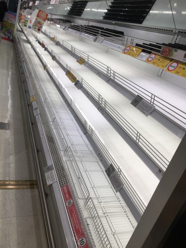 This is all because the papers advised people to stock up for 2 weeks. I’ve never seen anything like this.