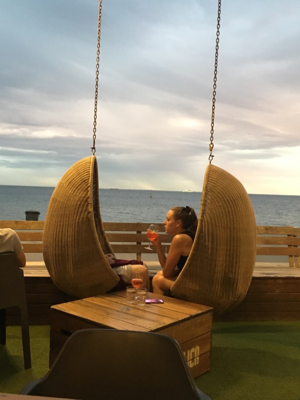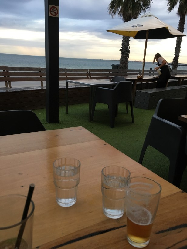 Last night it was warm thus we rode to St Kilda for dinner. As soon as we got out of the door it rained big drops. Crazy us went anyway and the rain stopped. More like a shower.