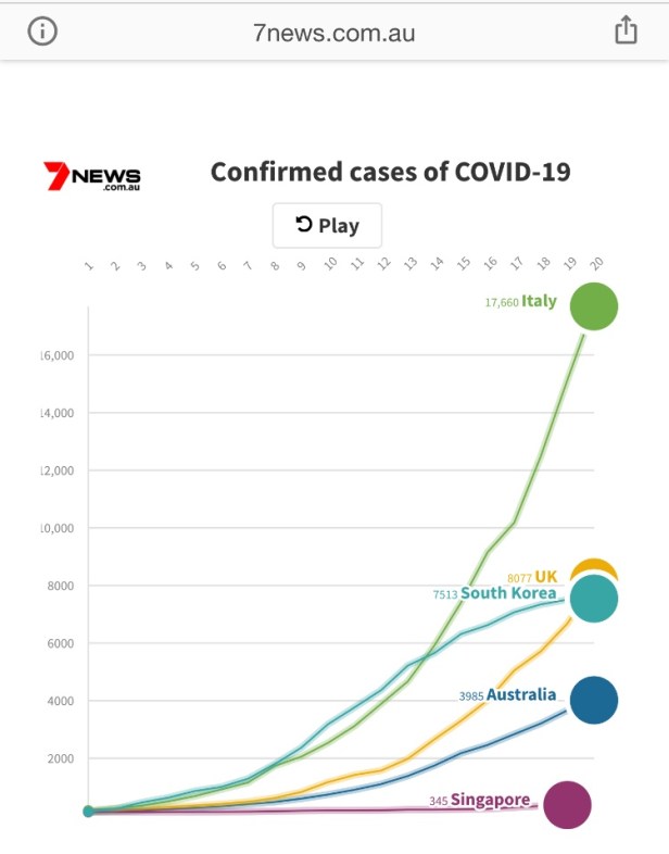 Comparisons to other countries at the 20 days mark. Bear in mind we do have a smaller population and we are also more spread out.