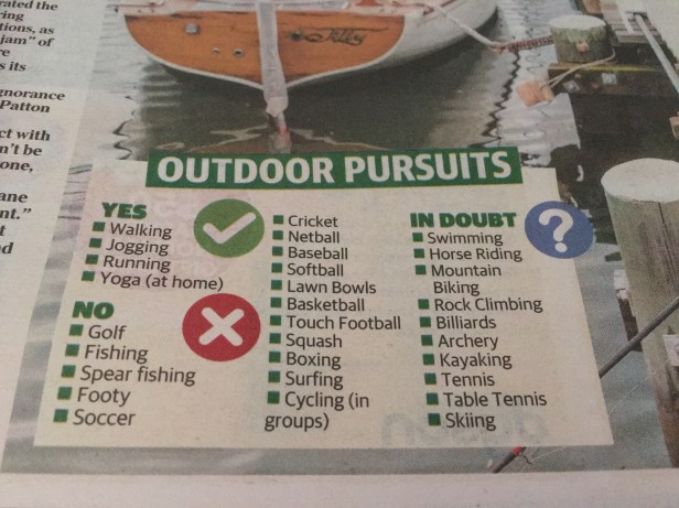 No boating allowed…though kayaking may be? No surfing but swimming may be?