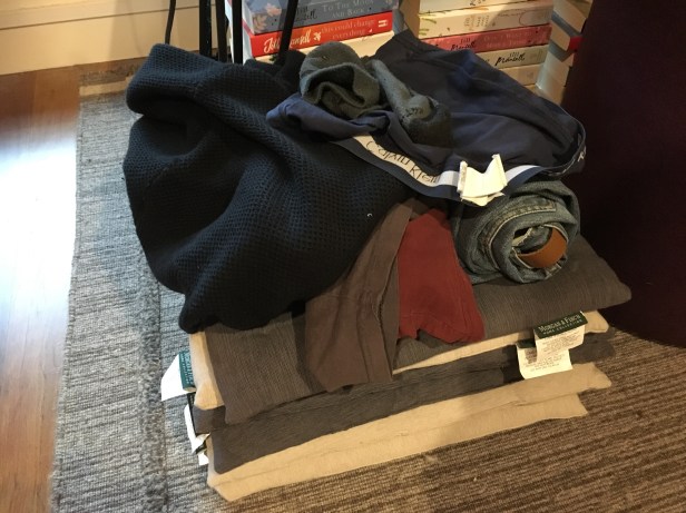 Then he’d set up his laptop for teleconferences. And I’ll potter around to do stuff or paperwork.