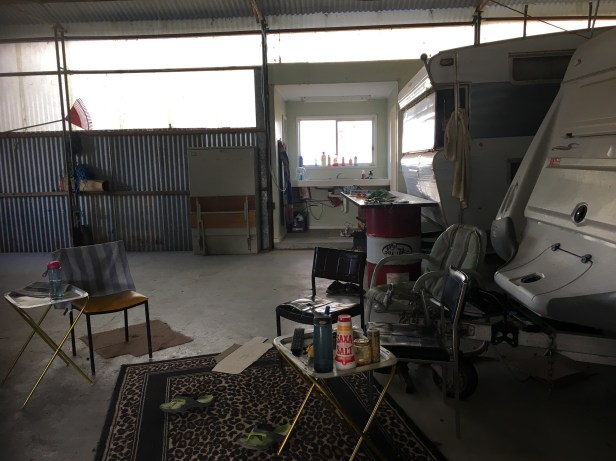 The two caravans provide sleeping quarters. Where the window is ? The sink is multipurpose , used to scrub hands, shave and brush teeth. It’s cold water though brrrrrrrrr.