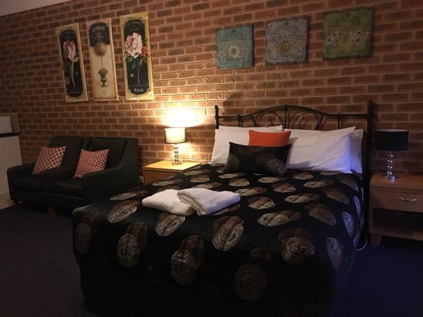 Mr Wanderer booked. The owner was great. They had left the door unlocked with the split system turned on to warm up the room. The room was comfy and all the conveniences for $120 for the night.