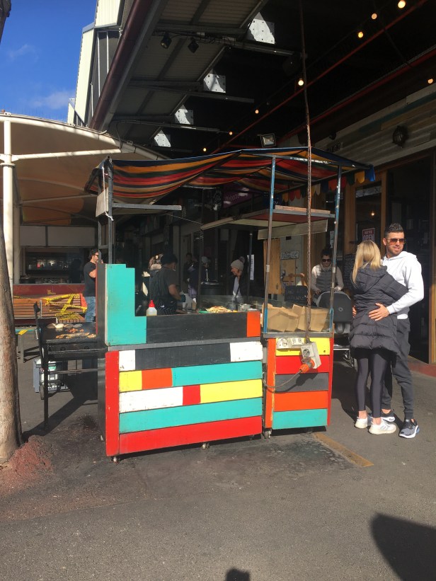 This guy must have seen me as he’s posing smiling π the fish cart..it’s where I usually have lunch when I go to the market. For $12 you get grilled fish in a Turkish bread roll with some lettuce and onion.