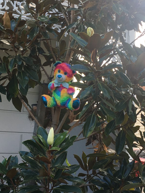 Someone popped a bear in their tree. For the kids to find on their walk.