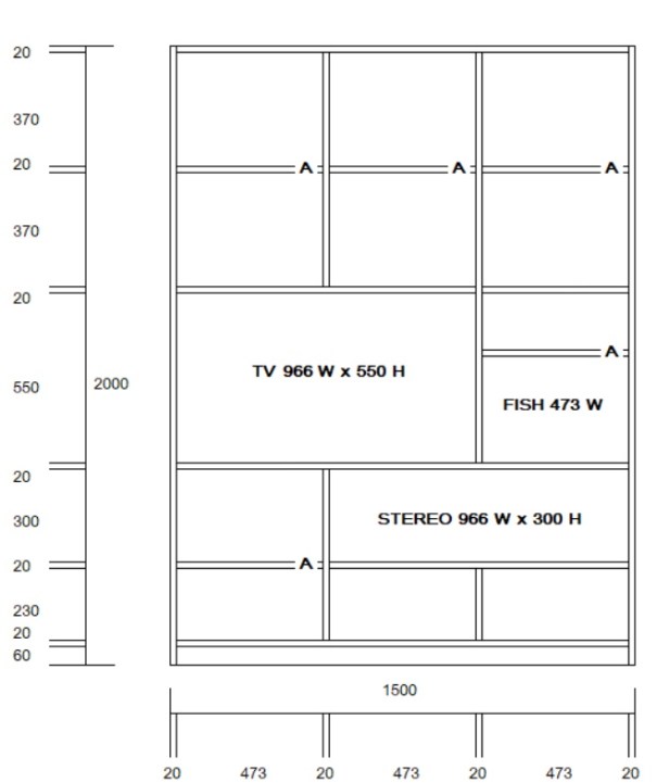 The furniture people have gotten back to me. I’ve asked him to amend it bringing the TV shelf to the other side and 100mm higher. Then the stereo to go on top of the TV. That way there’s enough height between the bottom shelves to be functional.