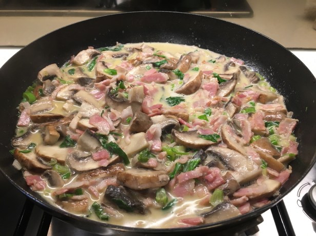 I threw whatever that was in the fridge to make this last night. It’s cream of mushroom and bacon to have on my pasta. Ate it for dinner, lunch and dinner again.
