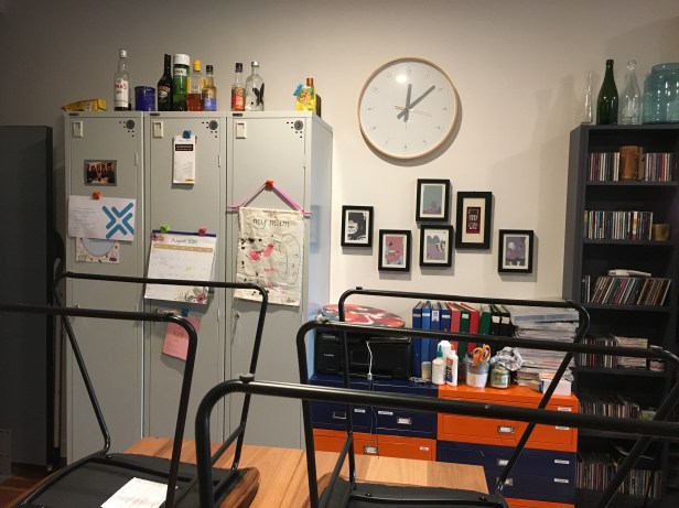 Where the heater was is now my art and craft/office bench. I’ve moved the lockers in to close in the gap.
