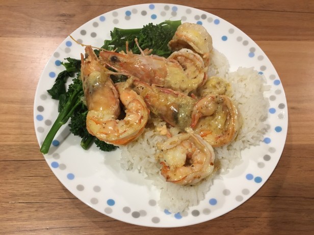 I got some prawns for my dinner. My guilty pleasure since Mr Wanderer’s cholesterol came back as 6.5 π so no more cream/butter/cheese etc for him.