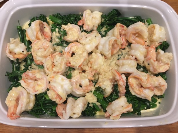 Sauté garlic in the butter, once it smells nice add in the prawns. Once prawns are cooked add in the wine, cream and thicken it with the cheese. Garnish with parsley on top. I forgot!