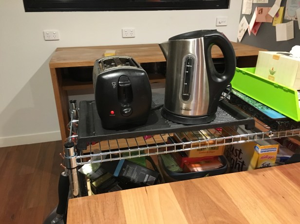 Meanwhile had to find room for the microwave and toaster and kettle.