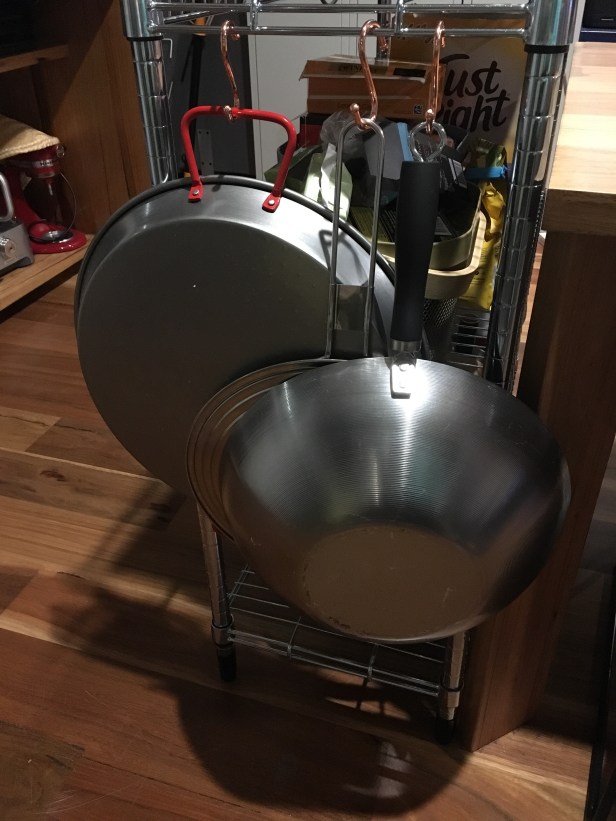 First job is to sand my bench and re-oil it. I’ve moved it against the wall again thus that way I can hang the copper rod at one end for my pots and pans. Plus it gives me a bit more room.