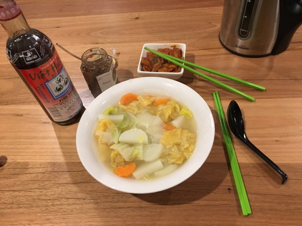 I had left overs tonight. Wonton noodles I made for Mr Wanderer the other night minus the roast pork and charsiu.
