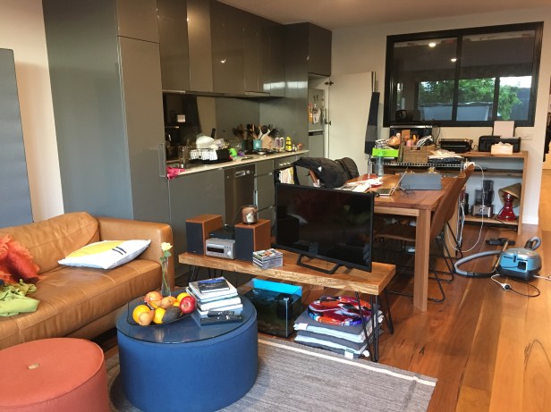 I’ve rejigged my apartment. The TV stand and wire shelves will go once my custom room divider arrive. It’s coming from overseas aka Tasmania π