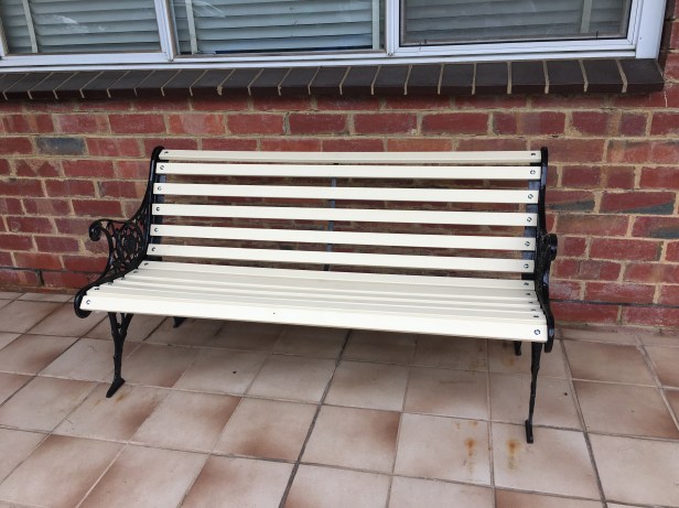 The photo of the bench we did up. He did most of the work. I only under coated the slats.