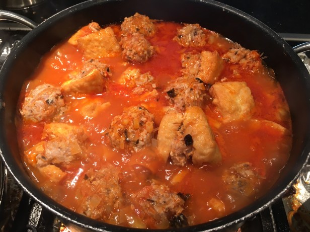 Tonight I made stuffed tofu. It’s yummy. It’s stuffed with pork mince, black fungus, bean vermicelli and brown onion. I marinated the stuffing with some fish sauce, sesame oil and ground black pepper.