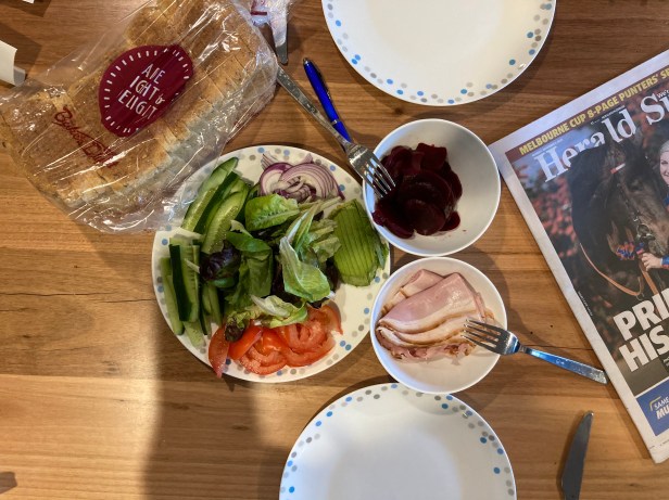 Lunch today to make up for the fish and chips last night. He wanted sandwiches.