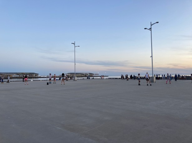 The pier was a hive of activity. Fishermen and young ones and old on their skates , rollerblades and boards. It looked like fun. The music was booming.