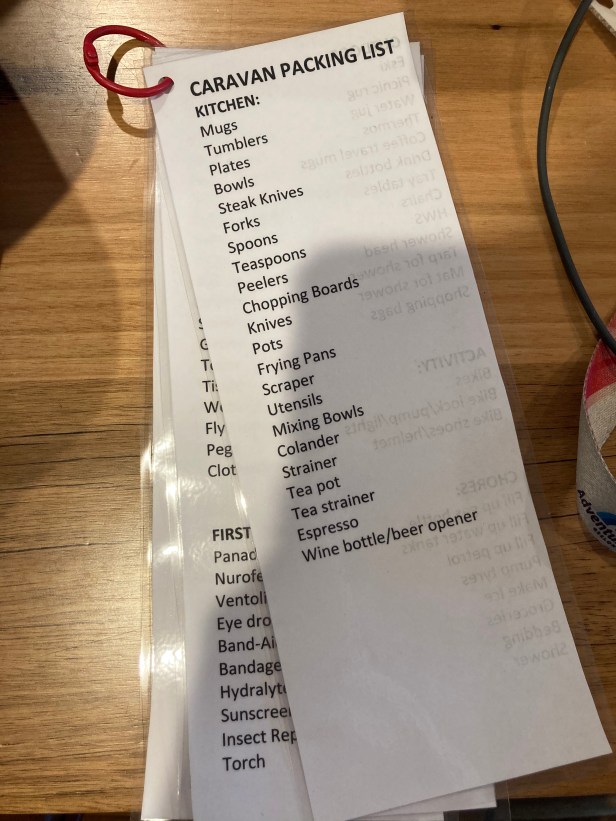 I came home with enough time to put the list together. All laminated and ready to go. I also bought groceries for the caravan.