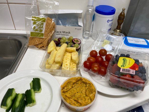 I was being healthy at work yesterday so we don’t snack on chocolates and chips. Tomorrow I’ll bring some more cheese as we still have cucumbers and tomatoes.