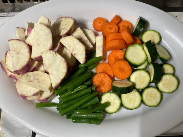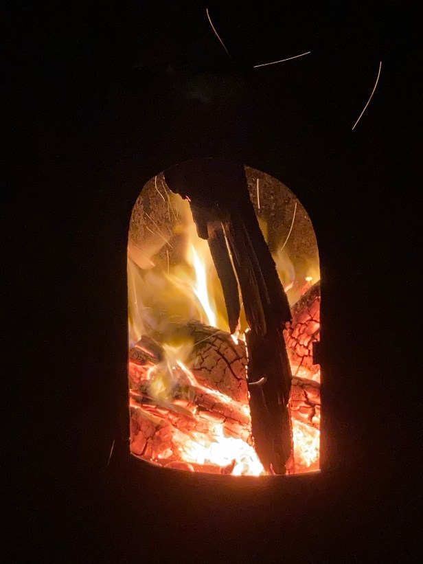 We finished the day with dinner cooked on the fire. I was annoyed that he didn’t put my spices and sauces back in the caravan after using it.