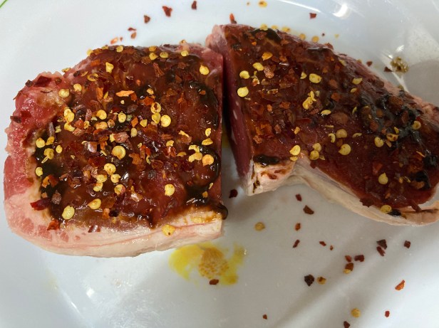 Thus I marinated the steak with some salt, vegemite and chilli flakes. I called it the Aussie steak! He was very dubious 😂 I was like be adventurous! Should taste okie since vegemite reminded me of soy sauce 😂
