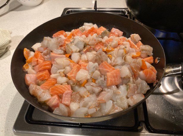 Lots of seafood going into that chowder. And guess what I forgot? Crispy bacon pieces 😩 Still tasted pretty good! I need to write it all down for my recipe book.