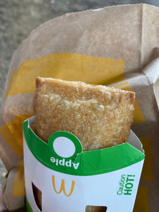 I treated myself to an apple pie. They’ve got a birthday celebration promotion where you can get one for $1.50 instead of $2.60.