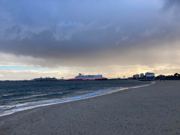 On Tuesday we rode again. This time to St Kilda for a coffee before breakfast. It was cold! He was like are you sure? I was like yes! Stop thinking about it and wasting time! Just do it!