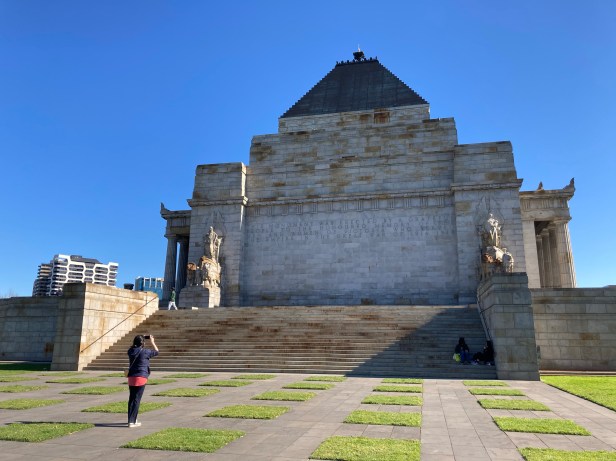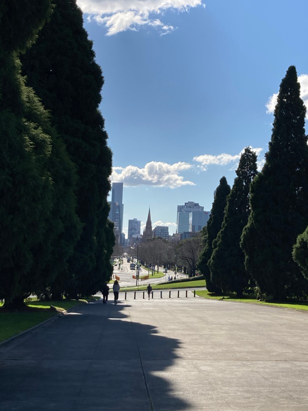 We walked back to the city via the Shrine of Remembrance. The side of it.