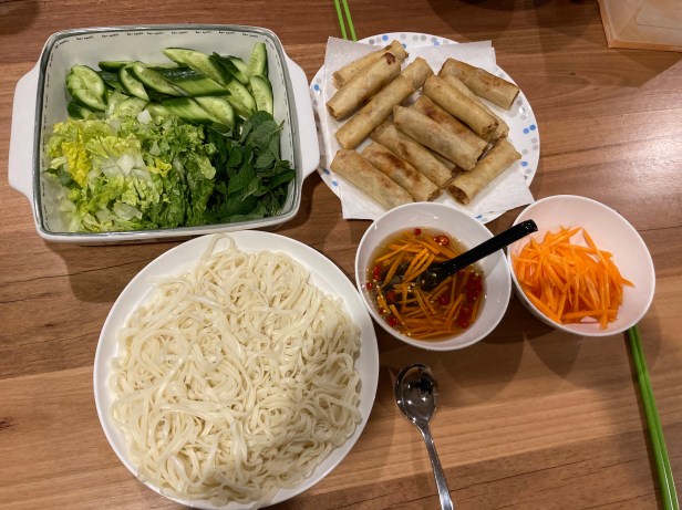 I bought frozen spring rolls that was delivered! Don’t think I cooked them too well! They were a bit under cooked!