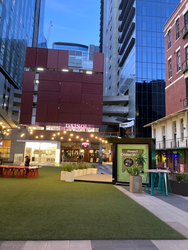 Behind it is the QV complex. With an outdoor area like a square and laneways coming off the square.