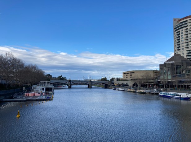 Views of the Yarra! They’ve dismantled the floating bar. Probably will stay that way until Summer.