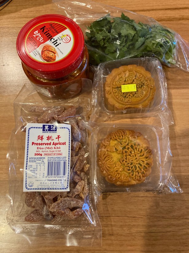 I managed to cart these home. The moon cakes safely tucked away in my cross shoulder bag.