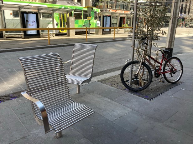 They took months to do this! Paved the area next to the tram tracks and put in street furniture!