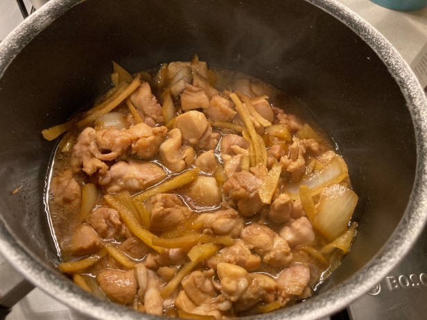 I made him his favourite. Ginger chicken, pretty much chicken thigh, brown onion, ginger, some sweet soya and fish sauce. Ginger was $55 a kilo! And no it’s not a typo!