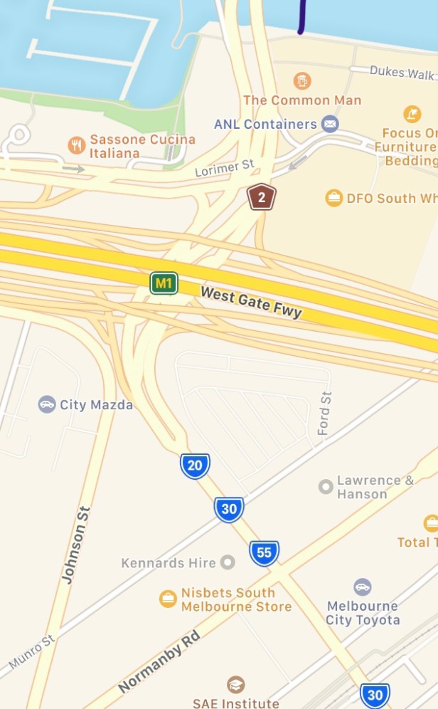 On the way back we rode all the way down South wharf! It took us to the freeway!