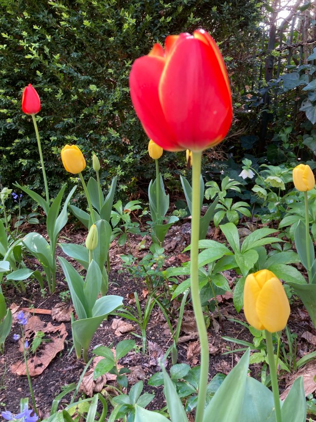 The tulips are blooming.