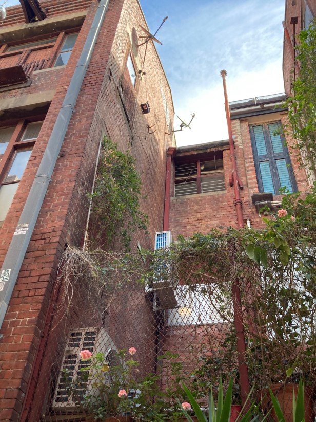 St Paul’s cathedral top corner (right) and Young and Jackson’s pub top corner (left)