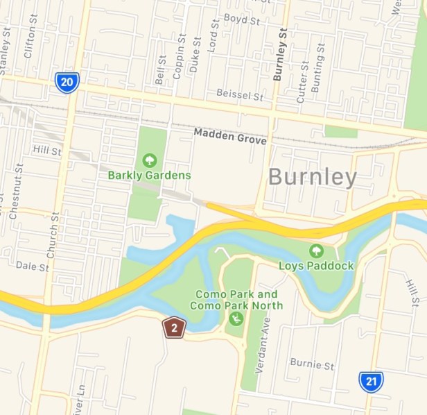 We ended up in Burnley. After the round about we turned left and rode along next to the freeway. Up to Madden then down again to cross Barkly gardens at the Southern end.